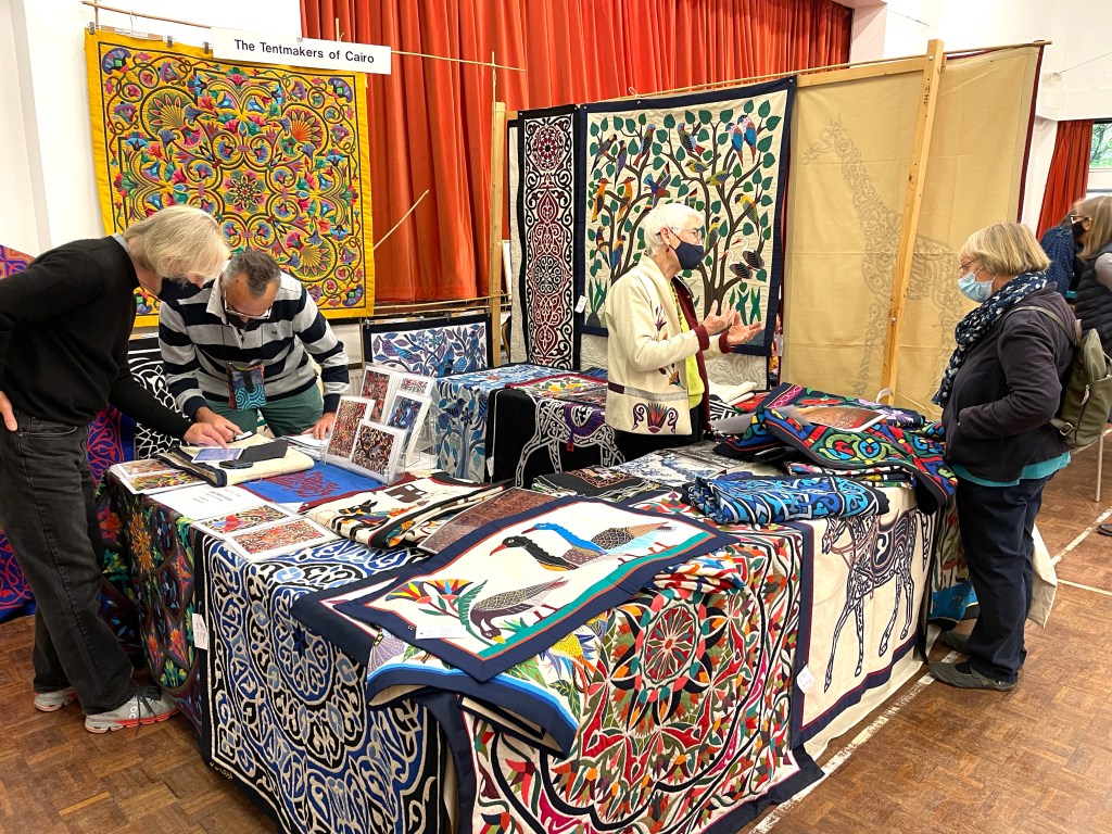 On arrival at the hall, we were met by a sea of colour literally everywhere from stands, table tops and coat racks. Stallholders items were sourced from many countries, displaying fabrics, clothing, baskets, wall hangings and other items either sold or there for display and discussion.