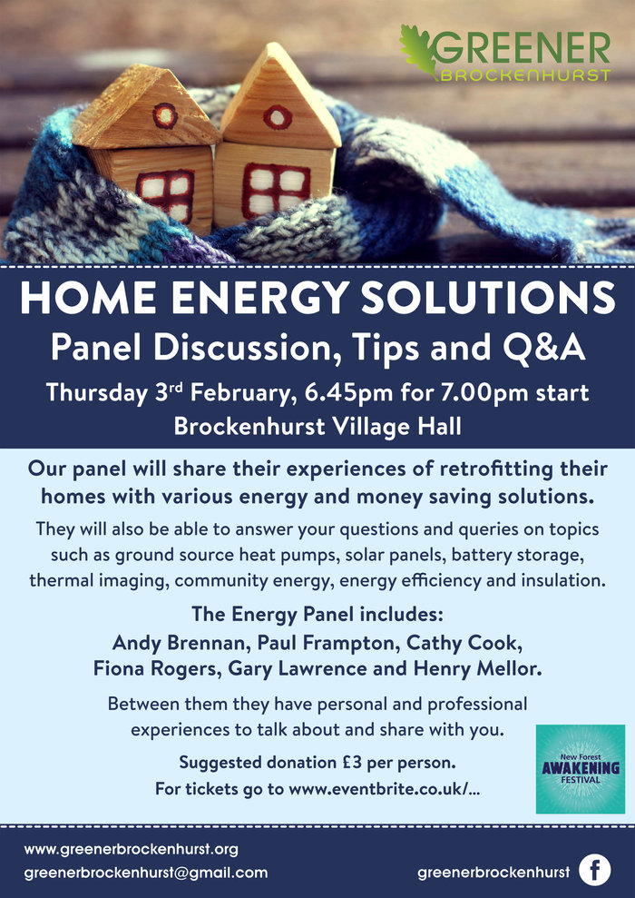 Greener Brockenhurst will be hosting a HOME ENERGY SOLUTIONS event in Brockenhurst which you are welcome to attend on Thursday 3rd February 2022, 6.45pm for a 7pm start at Brockenhurst Village Hall.