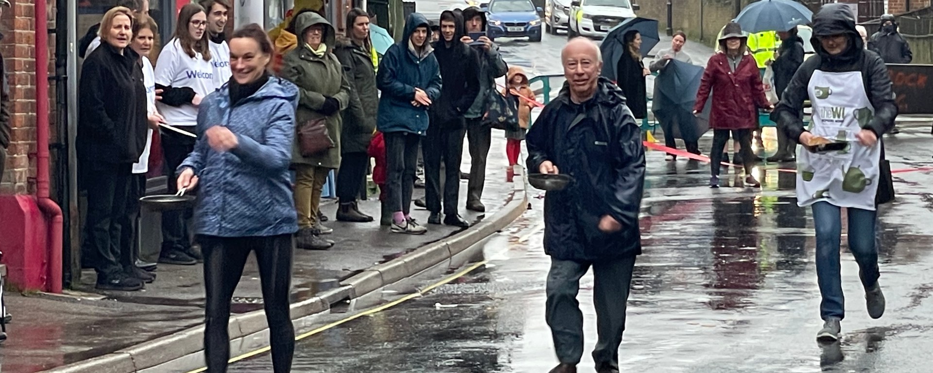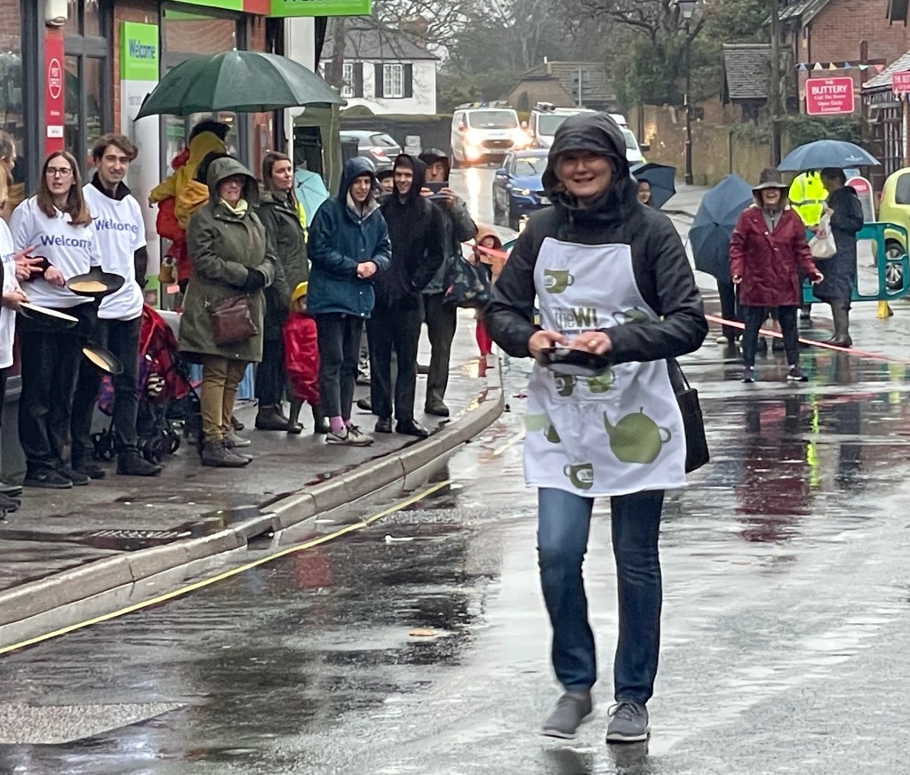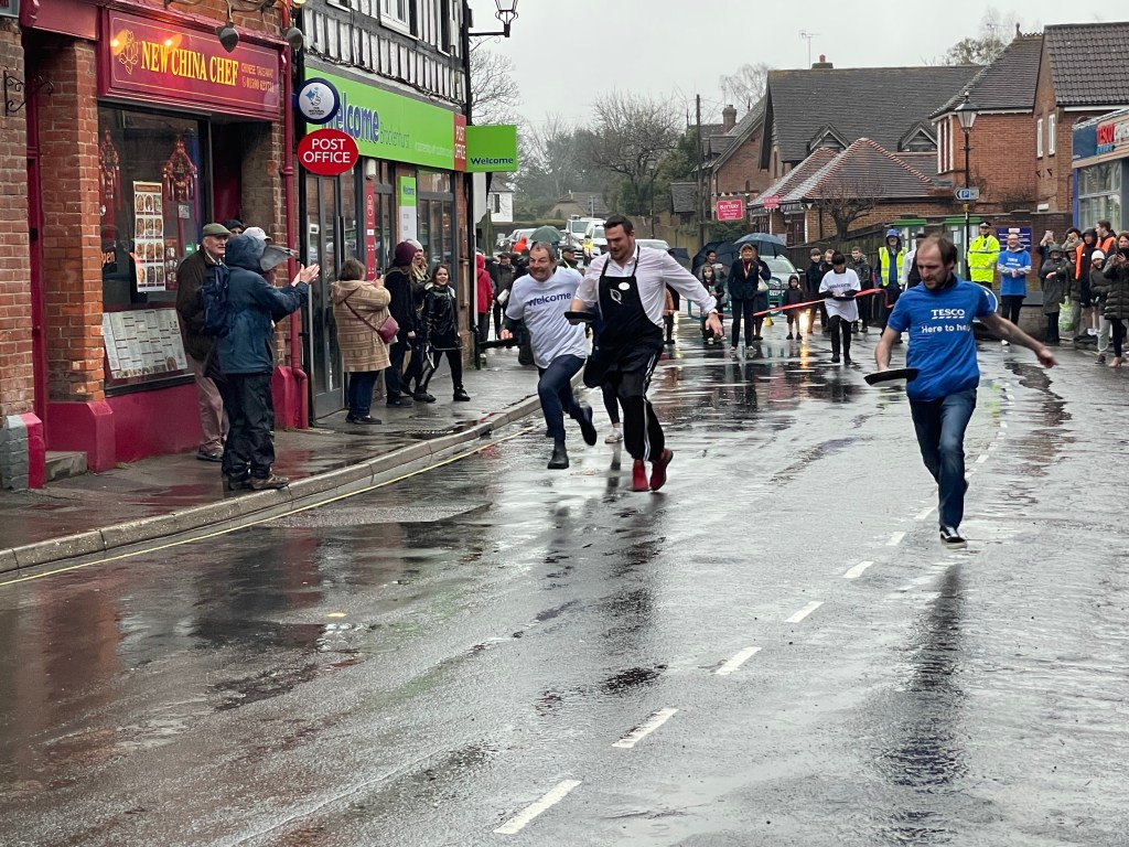 Every Shrove Tuesday Brockenhurst Parish Council put on a Pancake Race. Brookley Road is closed to cars for the occasion.