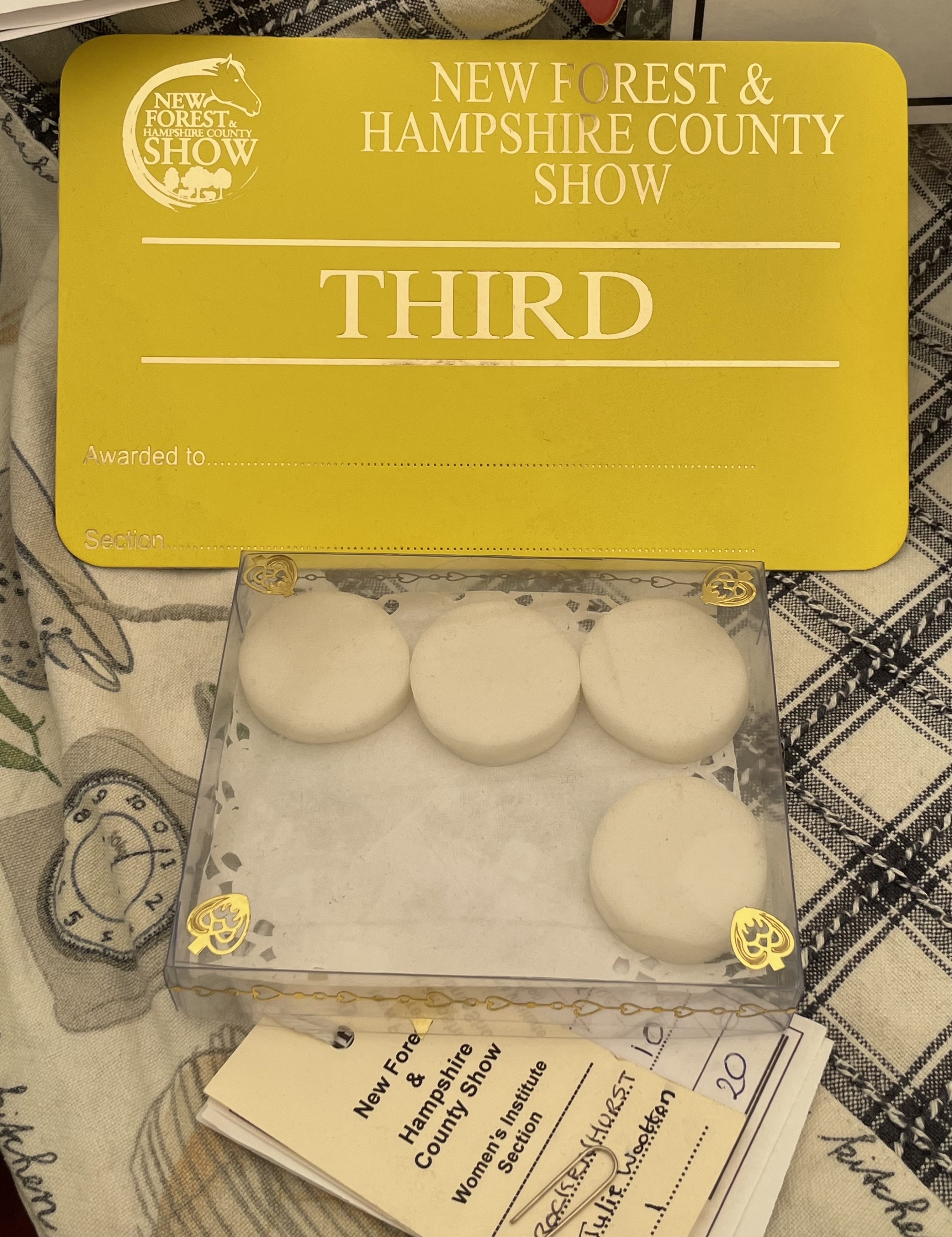 We entered the New Forest Show. Beautifully made items taking hours to sew, knit, macrame, bake, make fruit marmalade, photograph, paint flower arrange and make a 1920’s larder with contents and a model allotment we managed to have several third prizes. A tremendous effort by everyone involved.