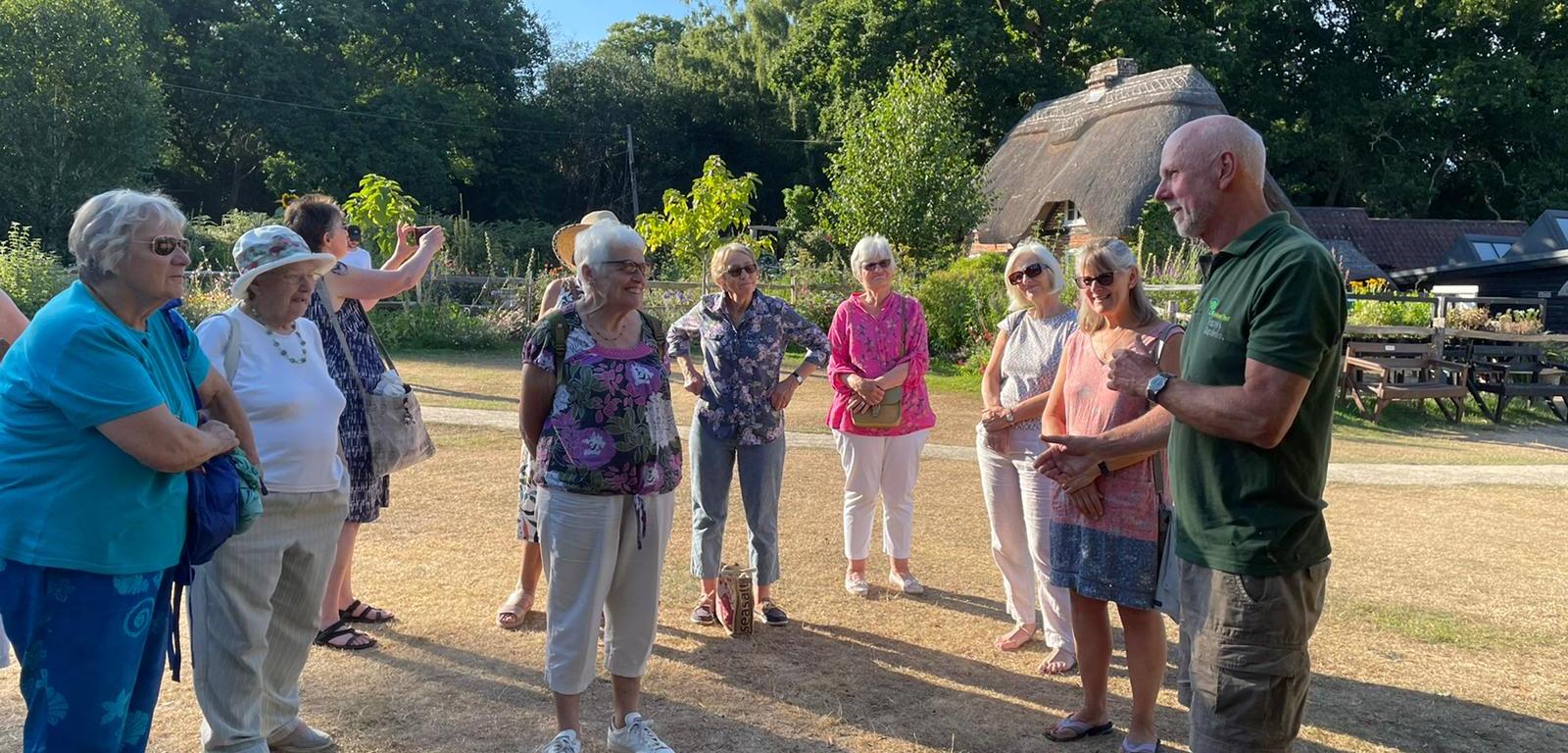 Our outing was to Furzey Gardens one evening. The philosophy of the garden is training and support to provide people with learning difficulties with work experience. Nineteen ladies listened to the Head Gardener talk about the Garden – the history and the future plans. Furzey is a ten acre woodland garden in Minstead, New Forest. An informal garden with lots of features for example fairy houses, winding paths and thatched huts. The garden since 1922, has been planted using seeds from all over the world. Furzey won in 2012 the RHS Chelsea Flower Show Gold Medal for a Show Garden and this has been recreated by the lake and is quite sizeable.