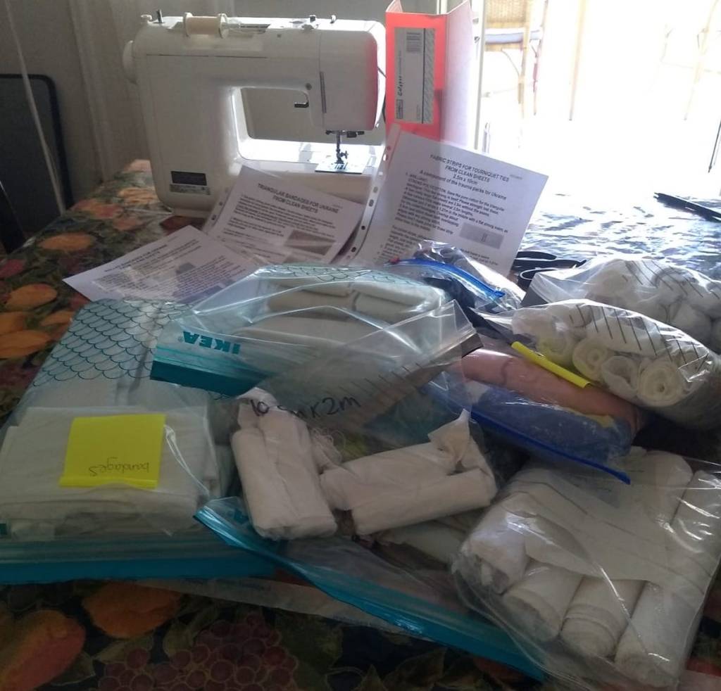 This week our bandage makers had a very productive afternoon at Carole’s house. Thank you Carole for hosting this.
