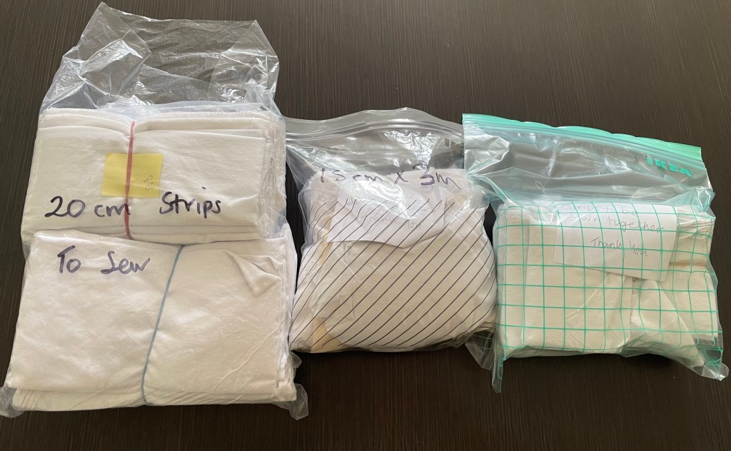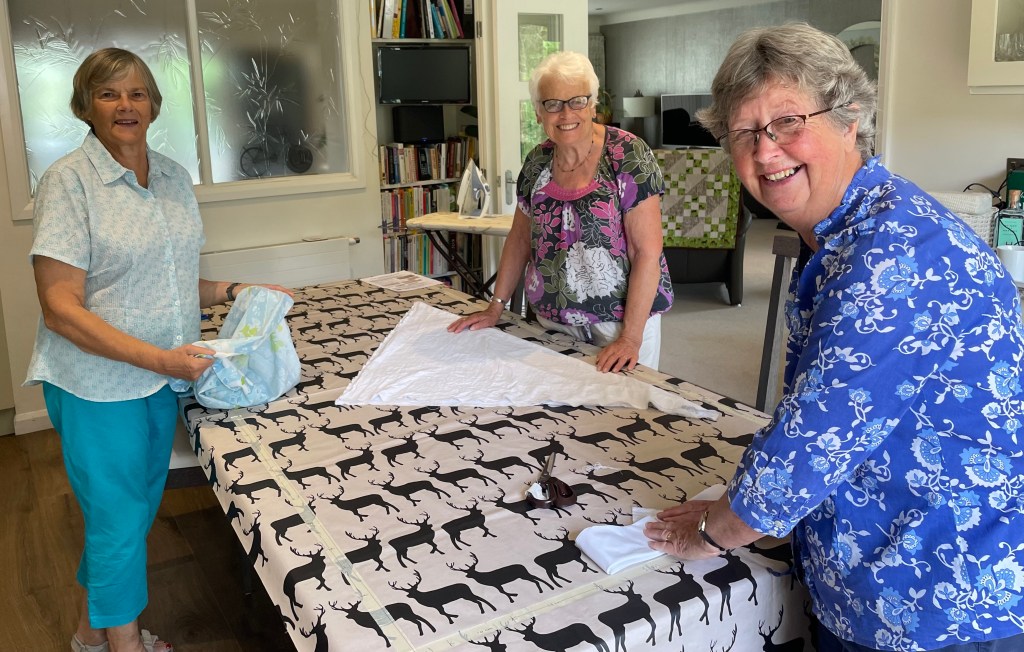 Then the following week (31st August) the session will be held at Julie’s house from 10am. All welcome. No sewing experience is required as we have lots of different jobs – ironing, cutting, ripping, sewing or rolling. It all makes a big difference.