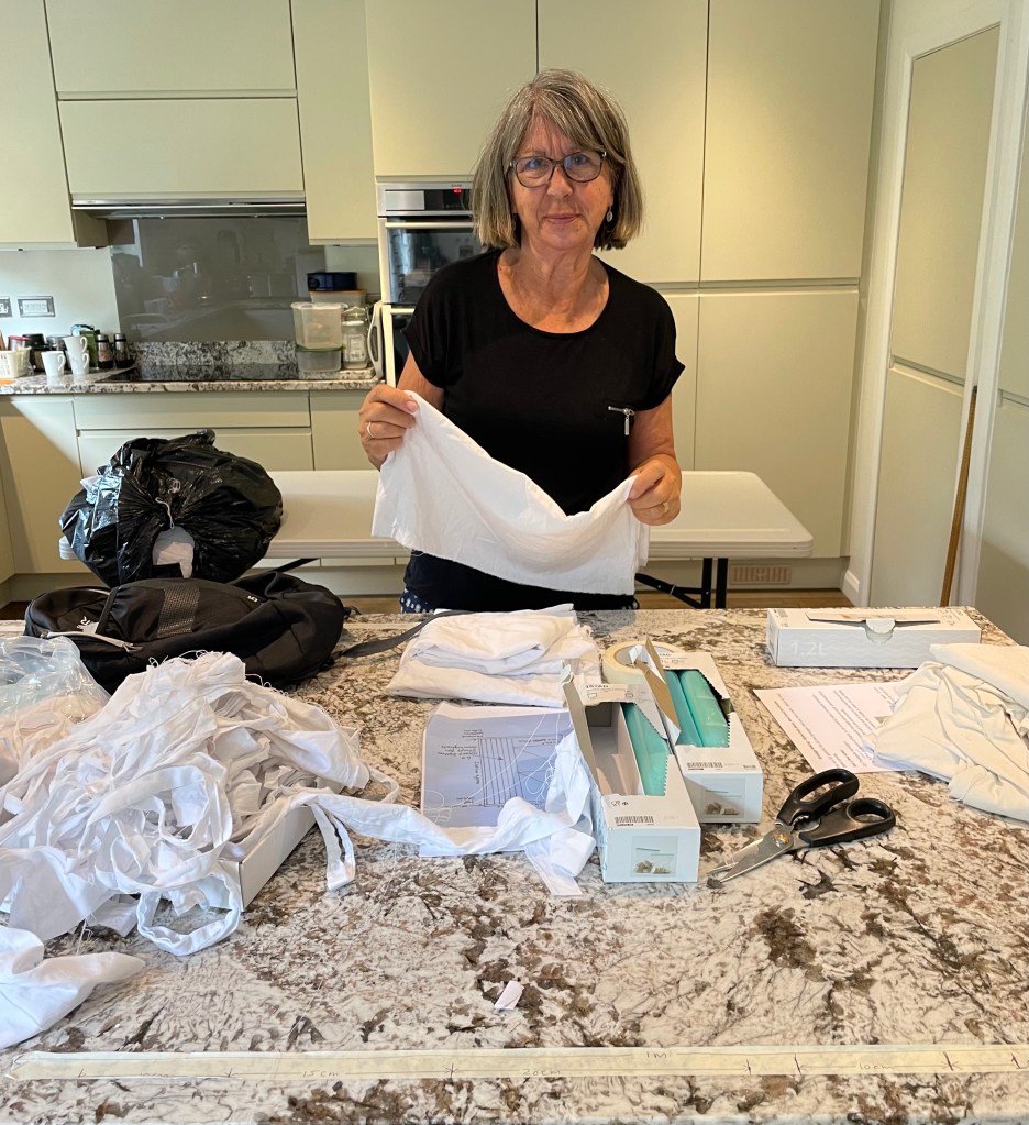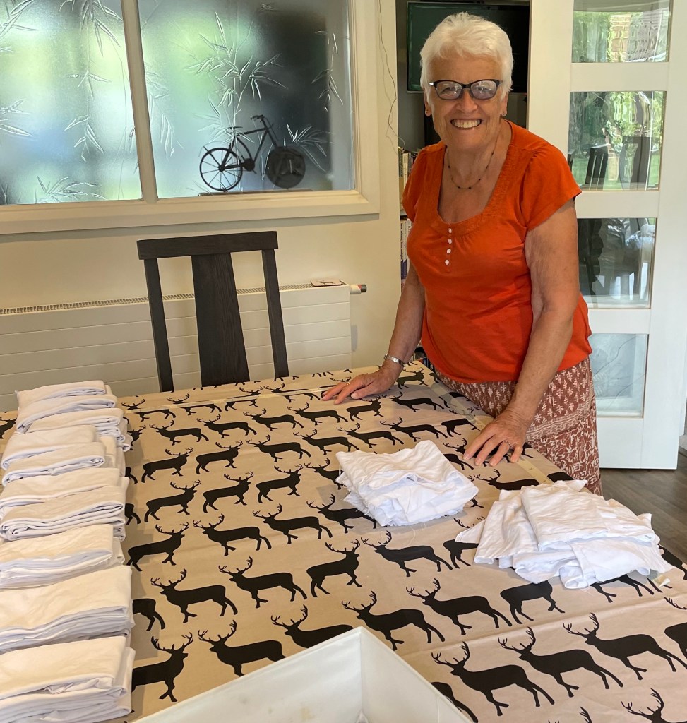 Last week, Rita kindly hosted a bandage making session and herself and Jan V worked hard rolling bandages.