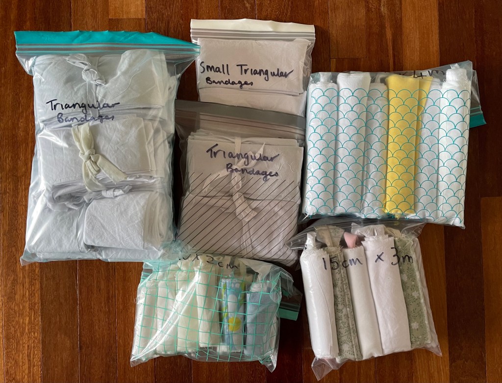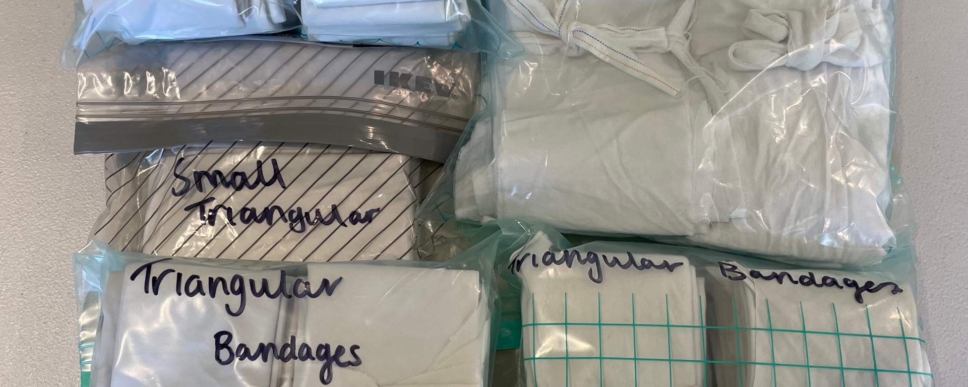We have continued to prioritise making triangular bandages as these go in trauma packs as these are what are most needed. We have just heard that 2000 trauma packs (containing 4000 triangular bandages) have now been sent to Ukraine by New Forest for Ukraine.