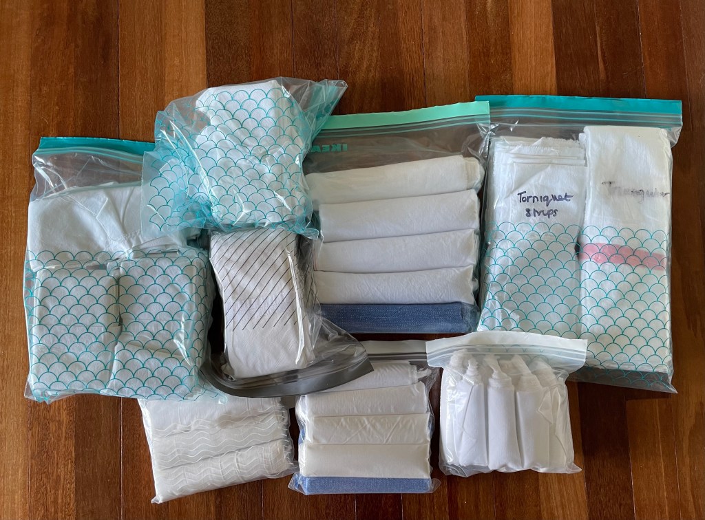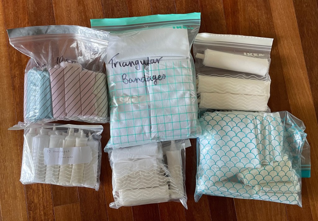 We have been also been ripping sheets, sewing strips and rolling for rolled bandages.