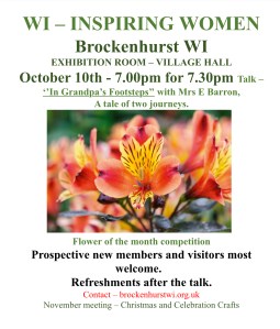 - Wednesday 5th October 10am-12 noon – to be held at Evelyn’s house