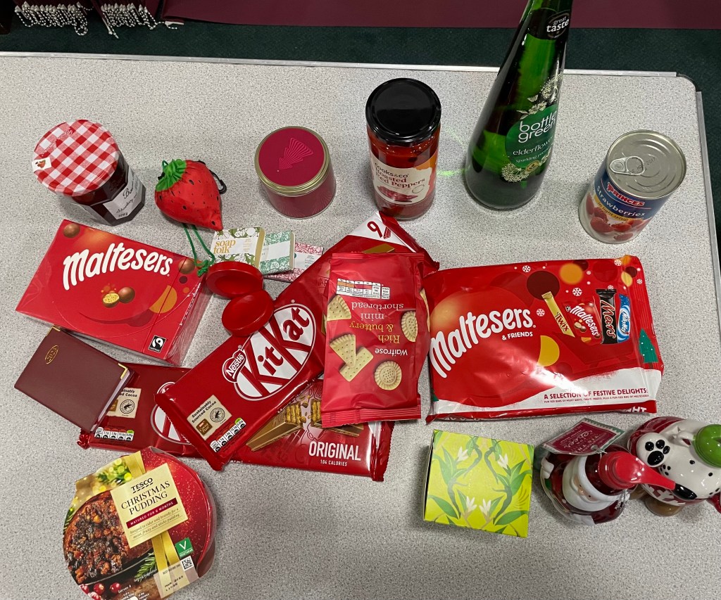 We had a collection of red and green items for the Hampshire WI Hamper collection.