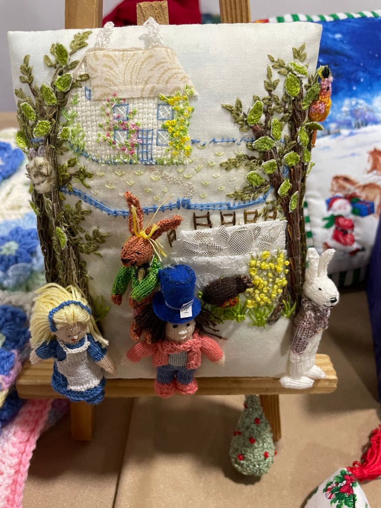 We also had a speaker, Annette Williams. Annette talked to us about her beautiful crafts she has made over some years. She is a member of a Dorset Federation of WI’s. She put out a display and talked us through the items which varied from quilts, Christmas stockings, crocheted items, knitted items. Most of the work was hand sewn. She uses different materials to make items and uses a variety of techniques and is keen on recycling. As a judge and a teacher she was able to pass on many ideas and tips. Her miniature trees and boxes (suitable for dolls houses) were incredible. So much patience must be needed and good eyesight.