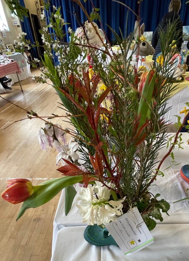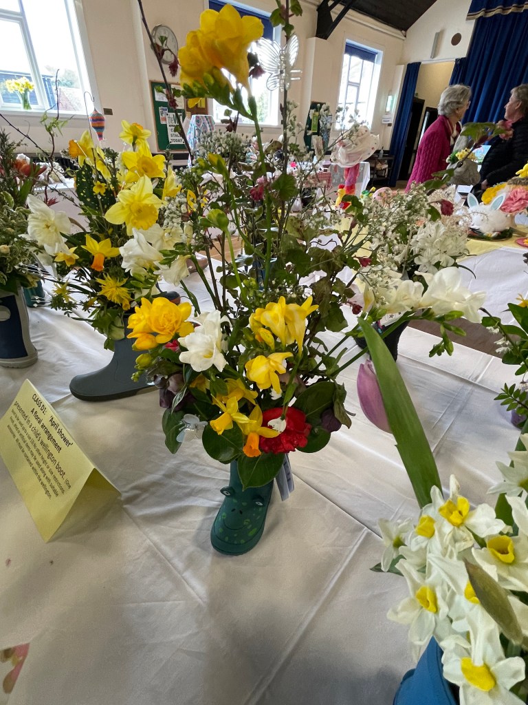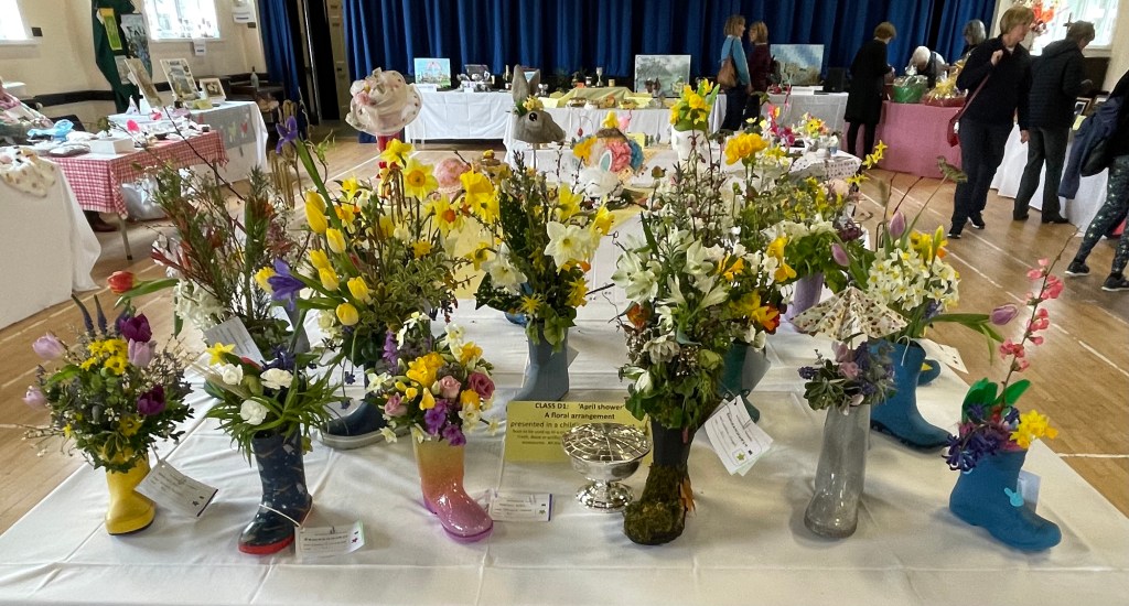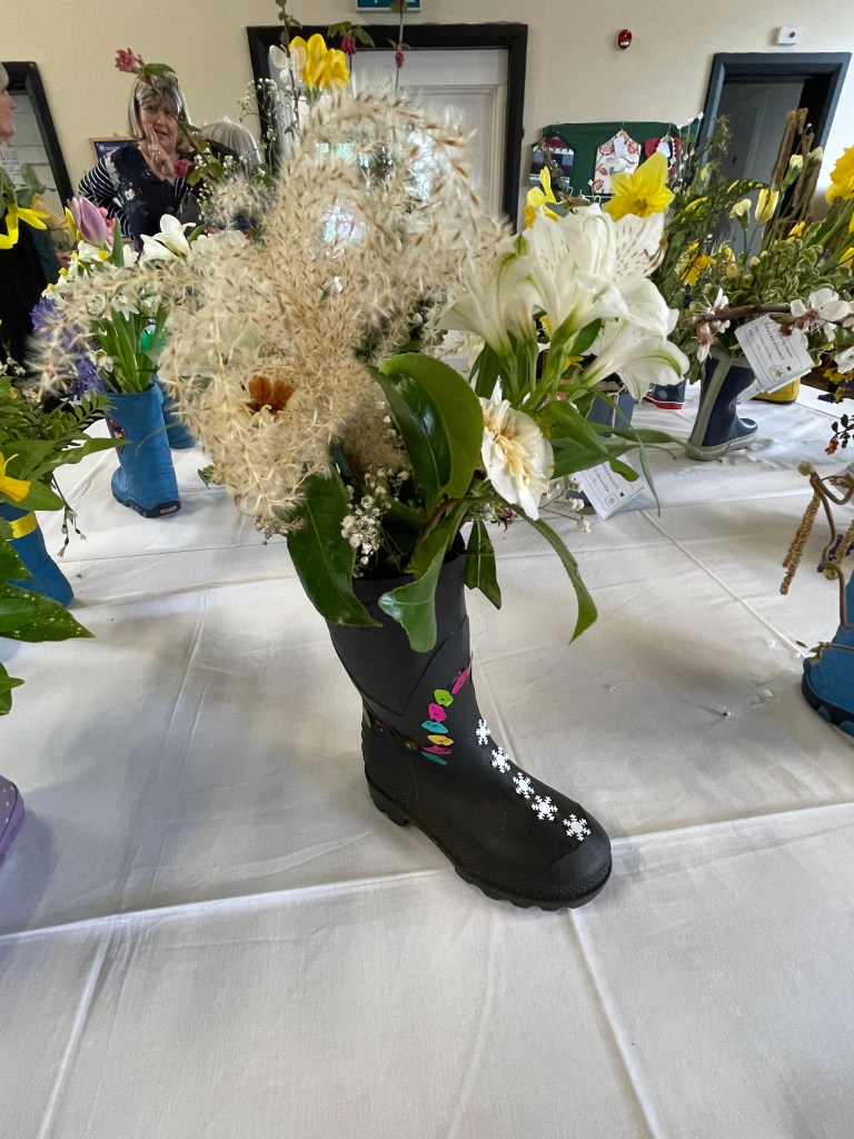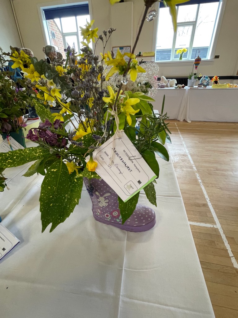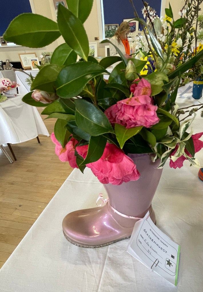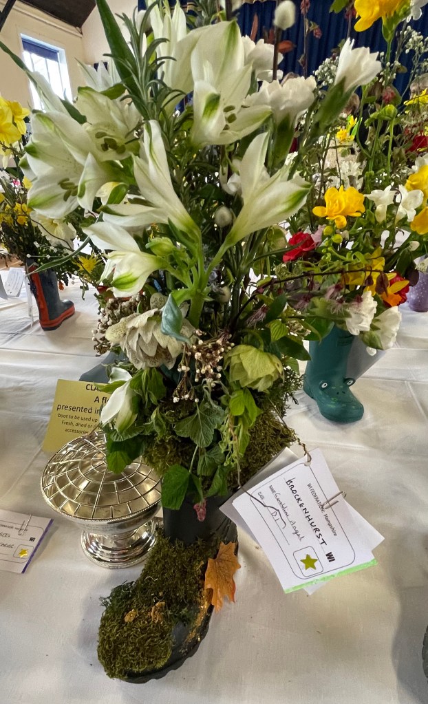 Thanks to a beautiful display of flowers in a wellie boot, Geraldine Angel was awarded The Beryl Browning Cup for the ‘most outstanding display’ in category D1 for the floral display. This cup was accepted for Geraldine by Carole.