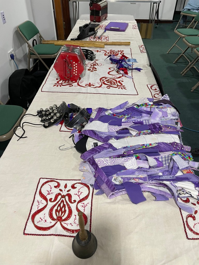 Alan brought a selection of instruments, clothing worn and props as well as musical instruments to show us. Certainly an interesting insight into this type of folk dance.