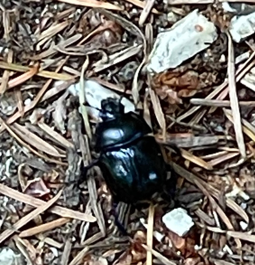 We heard the calls of a Great Spotted Woodpecker, Chiffchaffs, a family of Blue Tits and heard a Wren singing. A Lizard crossed out path as did this beetle. We also saw a giant ants nest!