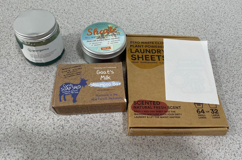- Buying toothpaste in glass jars and sunscreen in tins.