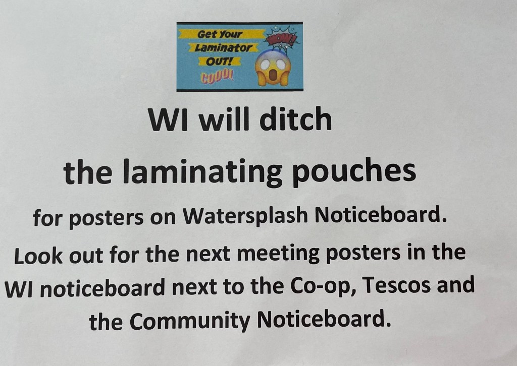 Issy has pledged to dutch laminating posters for the WI noticeboards.