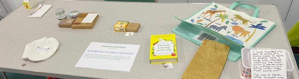 For our Competition of the Month at our July meeting, to tie in with Plastic Free July, we asked our members to think of an idea, write down or even make, something to demonstrate actions taken to remove plastic items in our everyday lives to make a difference to the tide of plastic which threatens our planet.