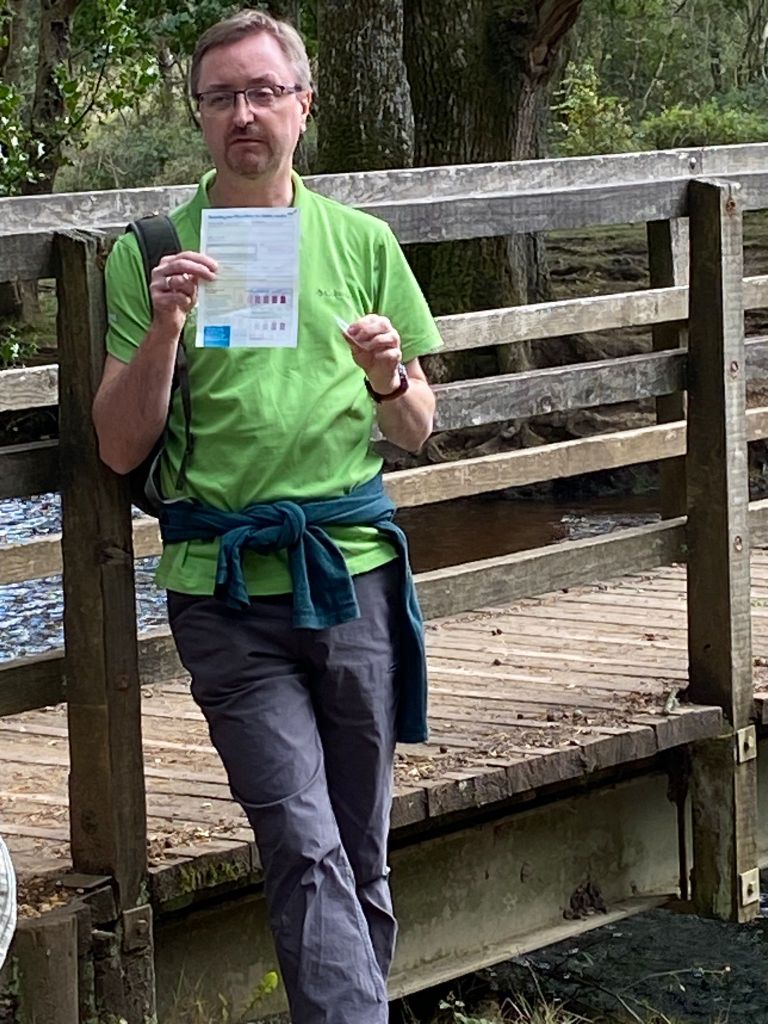 Ian Barker, Ecologist for New Forest National Park Authority outlined the ‘Clean Water for Wildlife’ study carried out with the Freshwater Habitats Trust. He told us that the water quality in Ober Water is classed as ‘good’ and showed us a water testing kit.