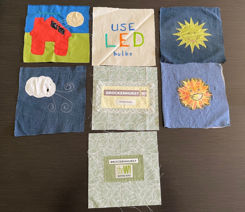 Brockenhurst WI members are also working on making quilt squares for the Brockenhurst area Community Quilt as part of the United for Warm Homes Day of Action on 18th November. Mel has been working especially hard, with contributions for Evelyn and Esther.