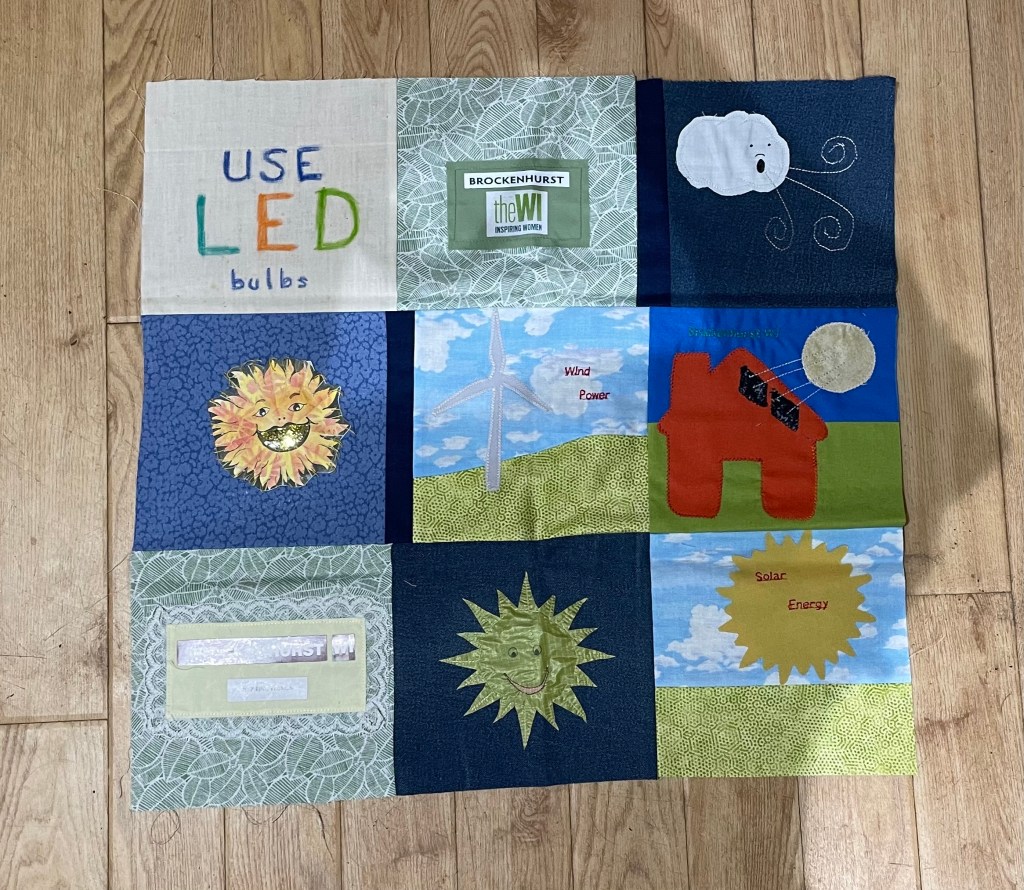 On Saturday 18th November, members of Brockenhurst WI will be attending a Day of Actions for the United for Warm Homes campaign . Our members, along with members of Greener Brockenhurst and Eco Church have been busy making quilt squares for a community quilt, supporting the National United for Warm Homes Campaign. This joint effort to produce a visual aid reflecting the need for renewables, insulation and warm homes. MPs and Councillors have been invited to the Day of Action so that we can make our views known that we are campaigning for a common goal: warm homes for all.