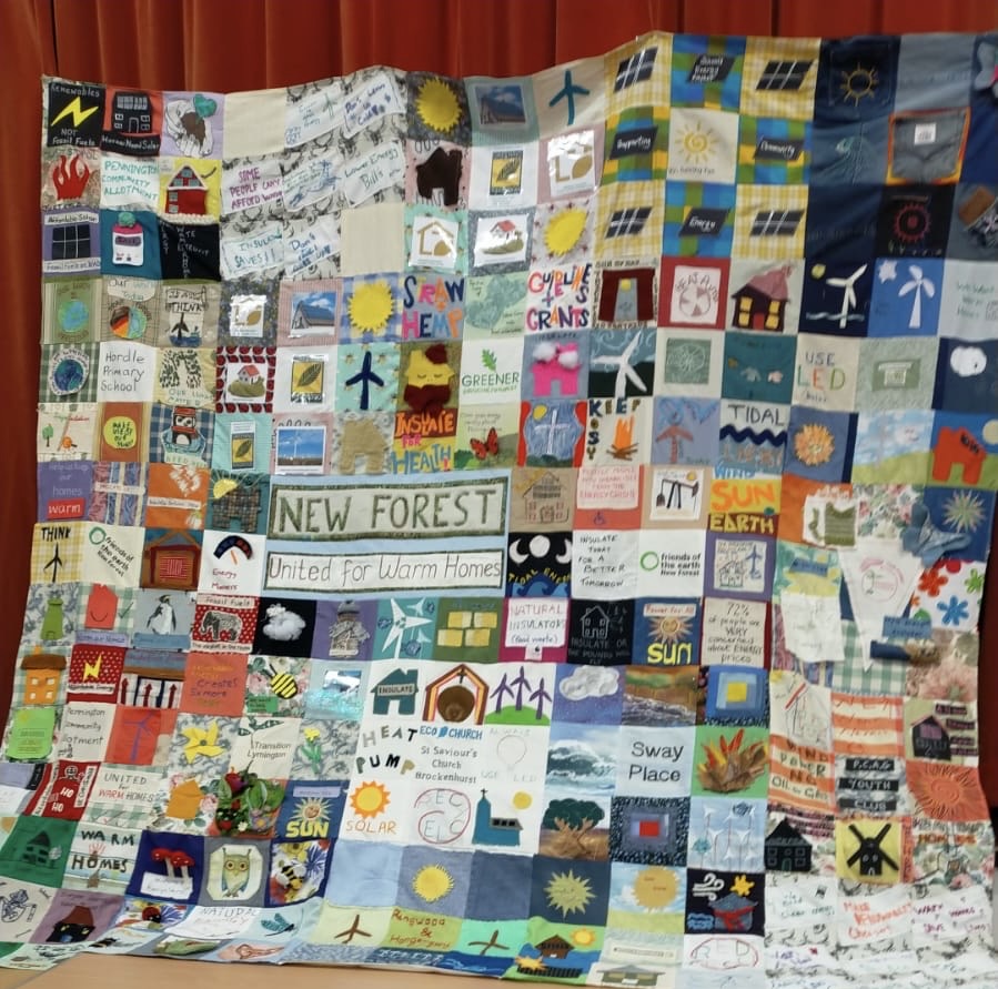 Members of Brockenhurst WI joined other community groups and organised by Greener Brockenhurst to make a community quilt. This campaign is part of the National United for Warm Homes Campaign. This joint effort to produce a visual aid reflecting the need for renewables, insulation and warm homes. MPs and Councillors attended the Day of Action where we made our views known that we are campaigning for a common goal: warm homes for all.