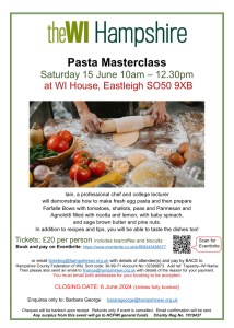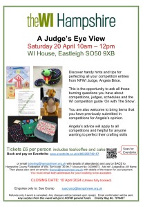 Saturday 20th April, 10am – 12pm at WI House, Eastleigh ‘A Judges Eye View’ –top tips from a WI Judge £6 per person. Book here.