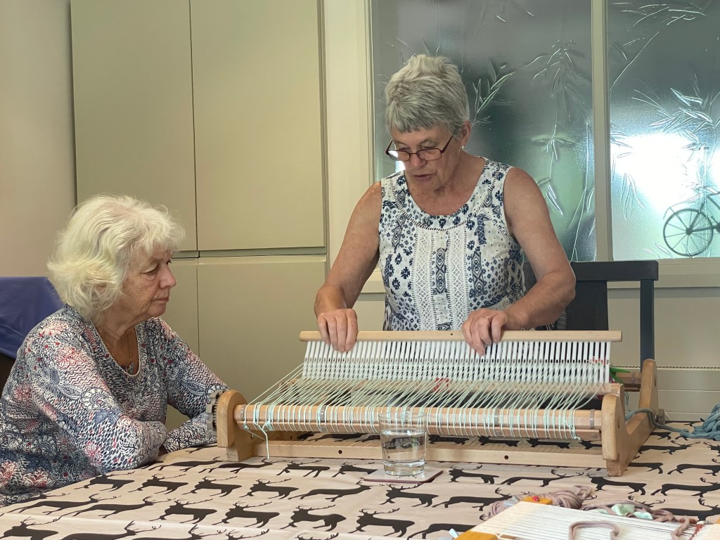 The Craft Group had a demonstration of weaving by Sally Phillips. Sally demonstrated old how t-shirts can be cut and made into yarn to use and got us to help her. Sally’s loom was passed around and those who wanted to had a go. We had tea and cake and were inspired by Sally and her ideas.
