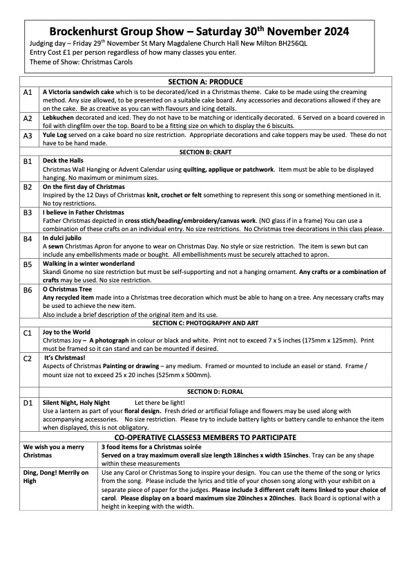 We have to submit the entries later this month, so please do contact us to sign up for either the workshops or to enter any category in the Show. It costs £1 however many entries you submit.The Group Show is less formal than the New Forest Show and a good way of testing the water, especially if this is your first show. If you are unsure what any category involves, please contact us
