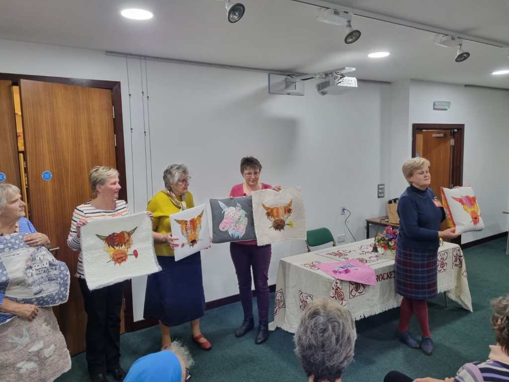 November ended with the Brockenhurst Group Show where we were the overall winners, the WI having the highest percentage of members entering to the proportion of their membership, with 32 members of our 62 members entering. the winners of the most individual points and Kim got first prize for her great Snowman apron and was awarded The Craft Cup.