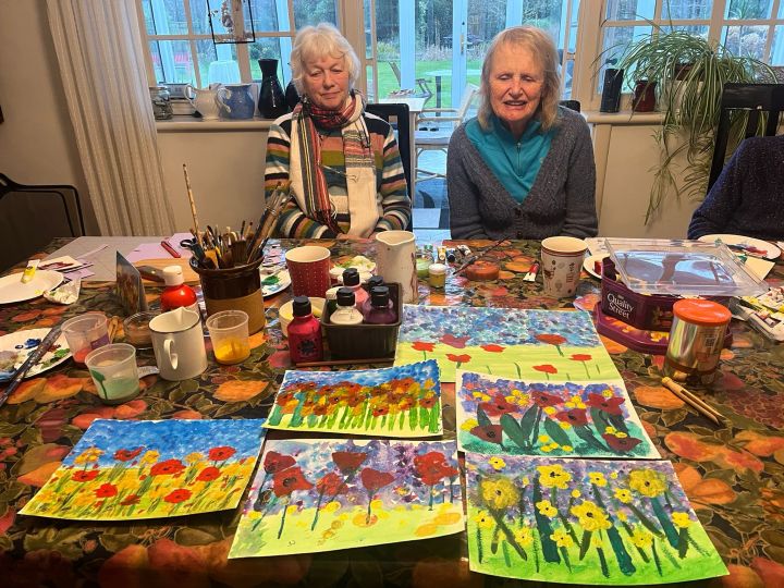 The Craft Group have had sessions entitled “Fun with Paints” and “Fun with Papier Mache’. Ladies met at Carole’s and did have fun! The painting was bright and colourful.