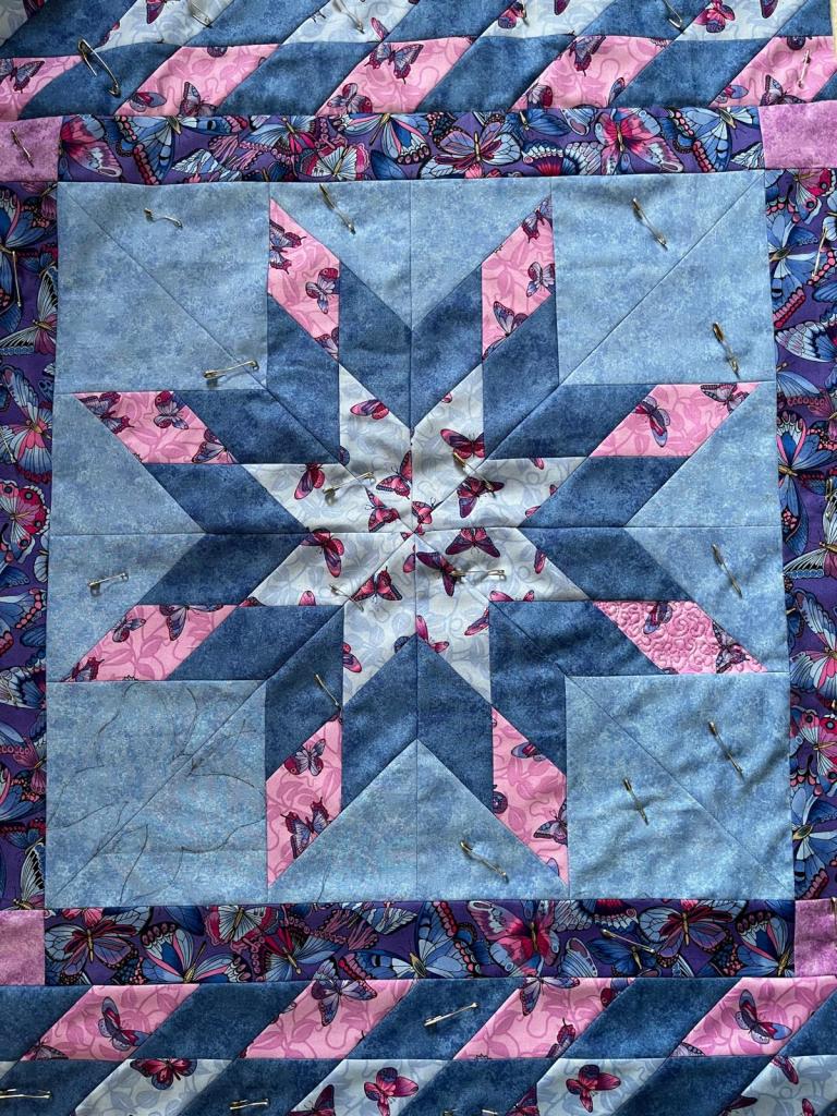 Kim also ran a charity “Quilt in a Day” session with an excellent lunch. We enjoyed learning about the stages of quilt-making from Kim, helping each other and supporting charity too.