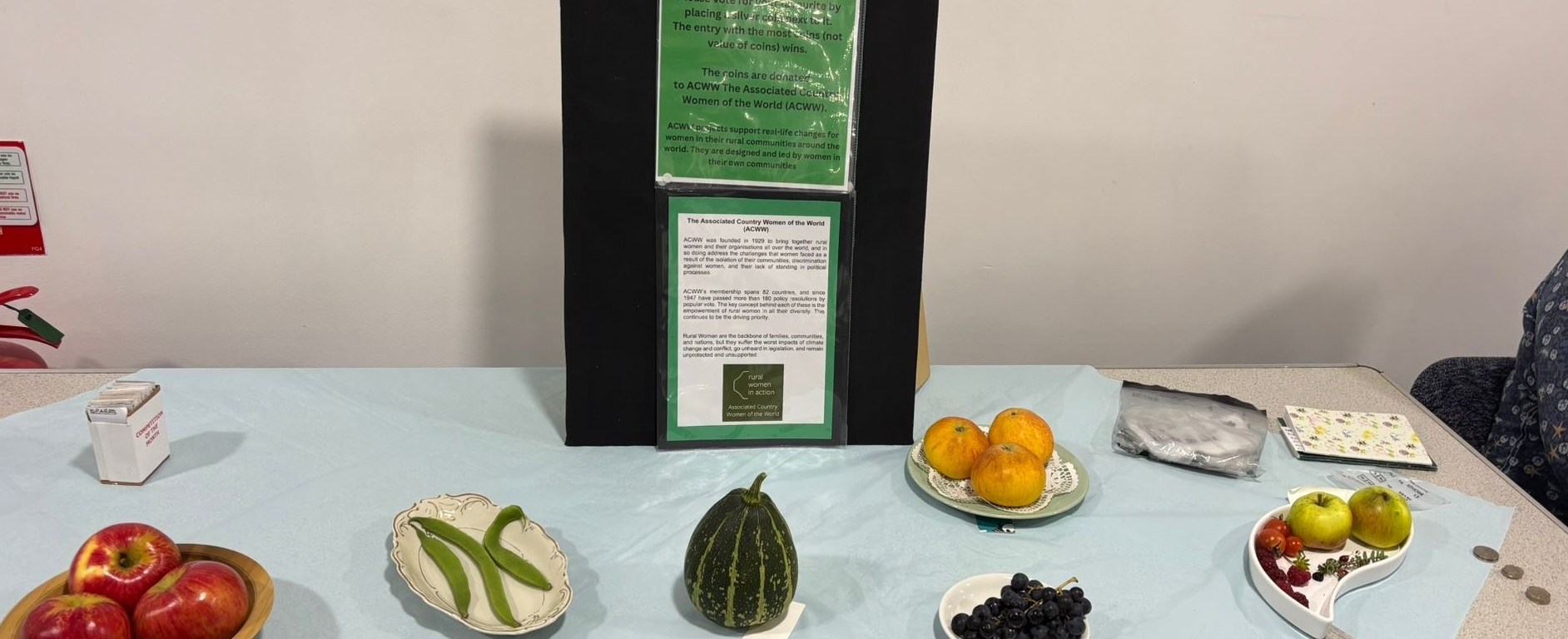 Thankfully, our ‘Competition of the Month’ was more successful! Members were asked bring in ‘fruit from the garden’ and this proved that fruit is easier to grow than loofahs! The joint winners, voted by members with a silver coin, were Issy and Julie. The coins are donated to ACWW.