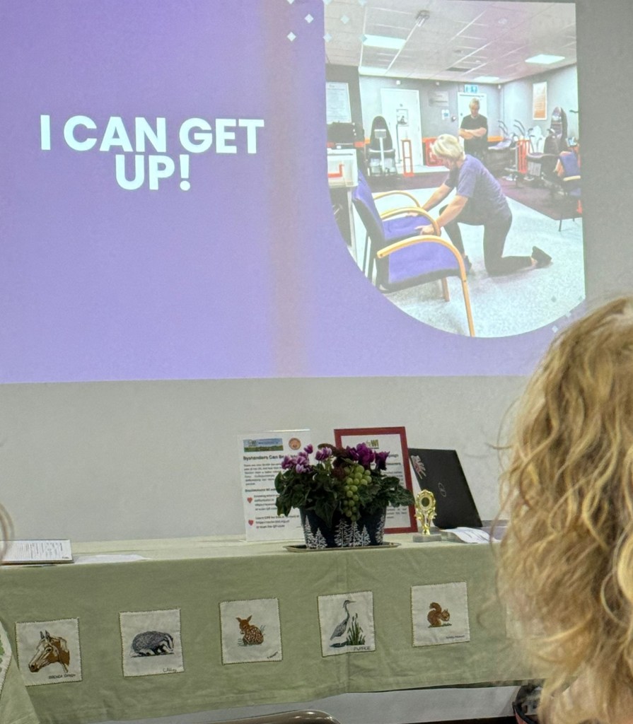Liz showed us how to get up from the ground in the event of a fall and challenged us to see how many time was can ‘sit to stand’ in 30 seconds and work at improving this score.
