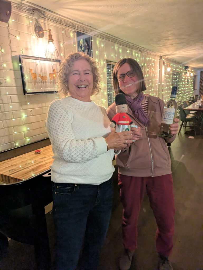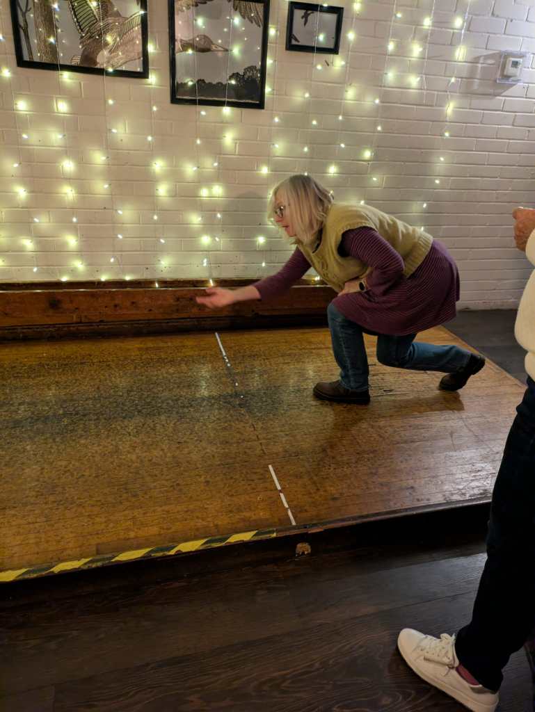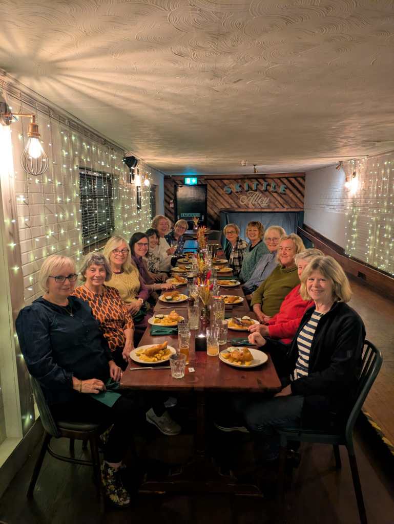 Great fun was had by all at the skittles evening, which was organised by Karen. The best score and first prize went to Britta. Liz gained the honour of holding up the rest of us in the points table to claim the chocolate orange. Fish and chip supper was delicious with plenty of chat around the dinner table. A good time was had by all.