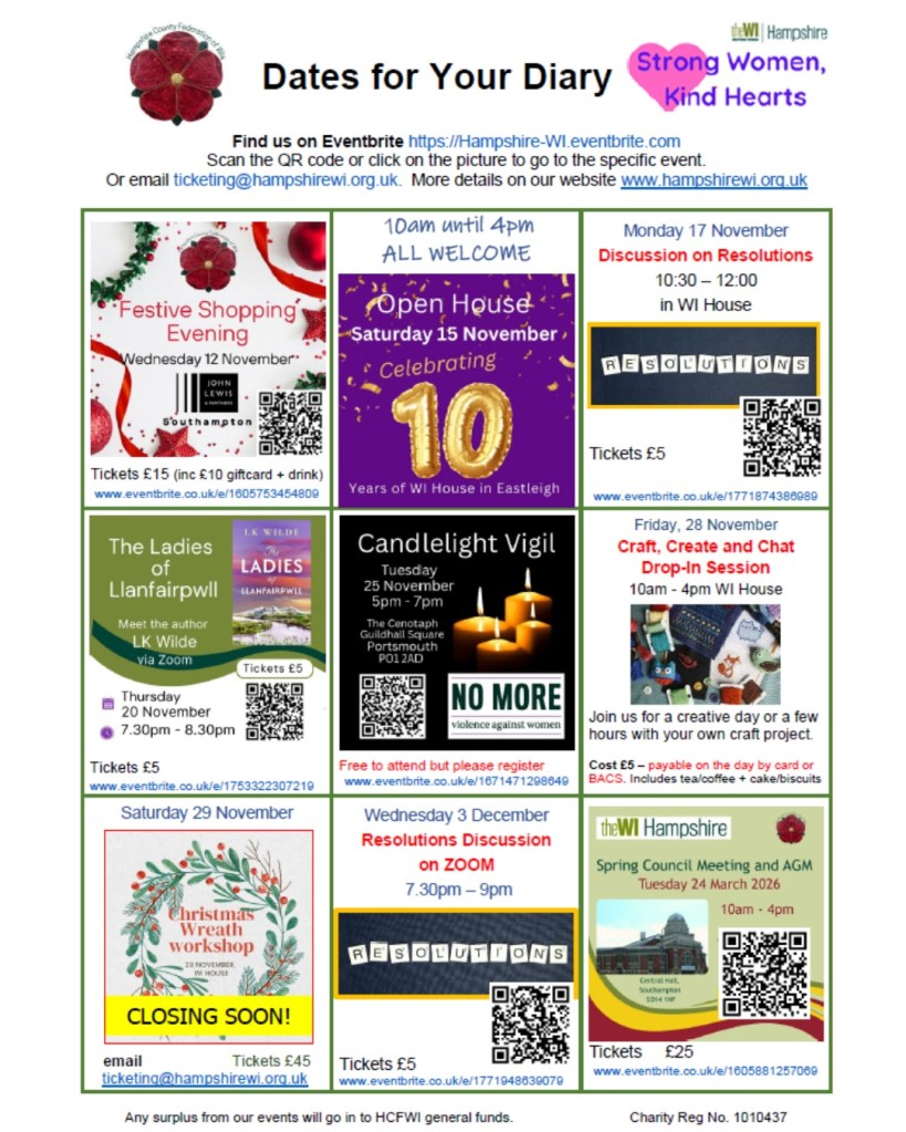 There are many events from Hampshire WI coming up, including: