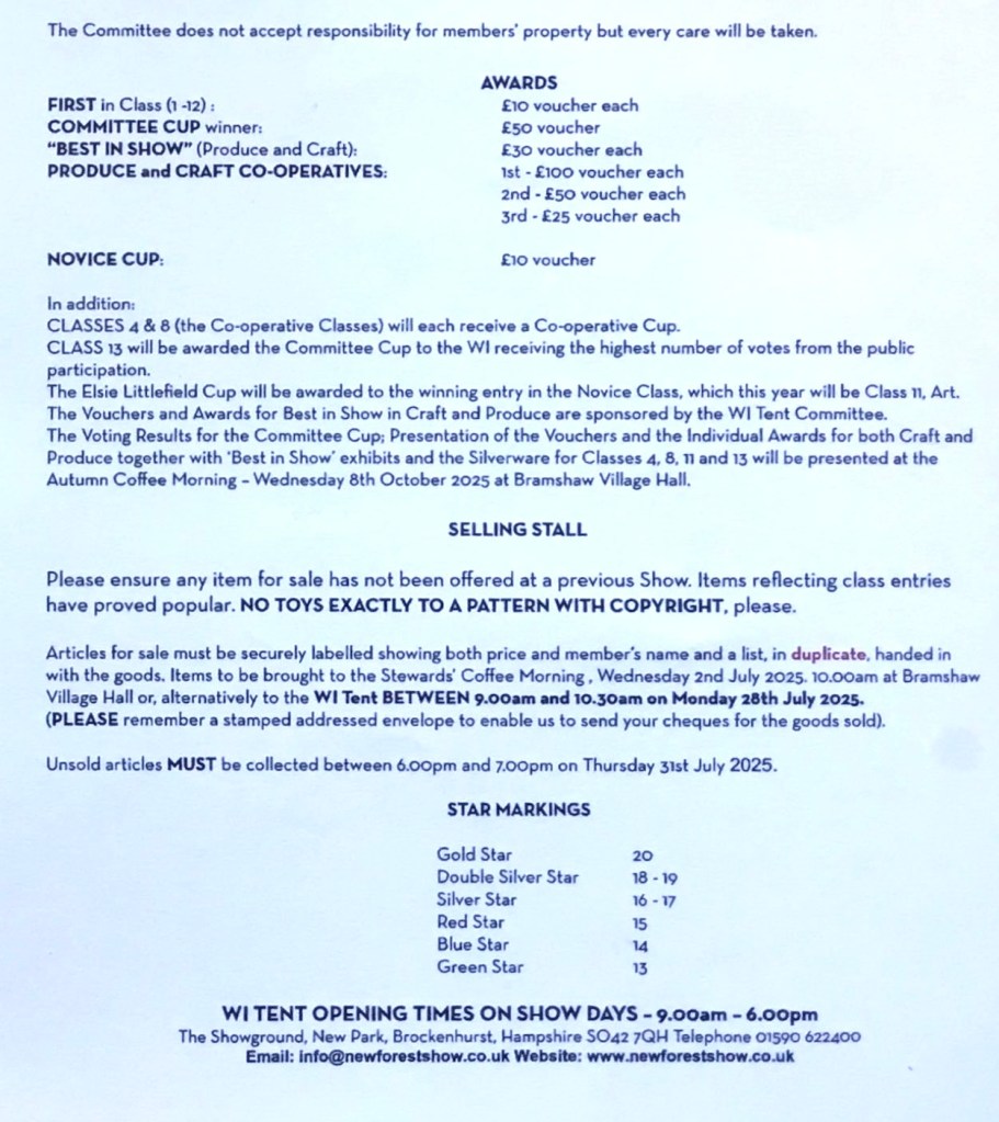 removable for judging and labelled. Accessories may be used but must be within the exhibit area and will be marked as part of the Staging and Interpretation. Please add name of WI to