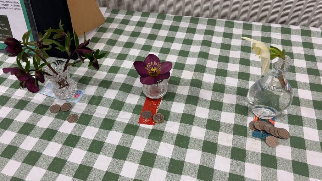 The competition of the month was a Hellebore or a Snowdrop in a vase. Despite stiff competition this month it was won by Maureen. Donations from this competition go to ACWW.
